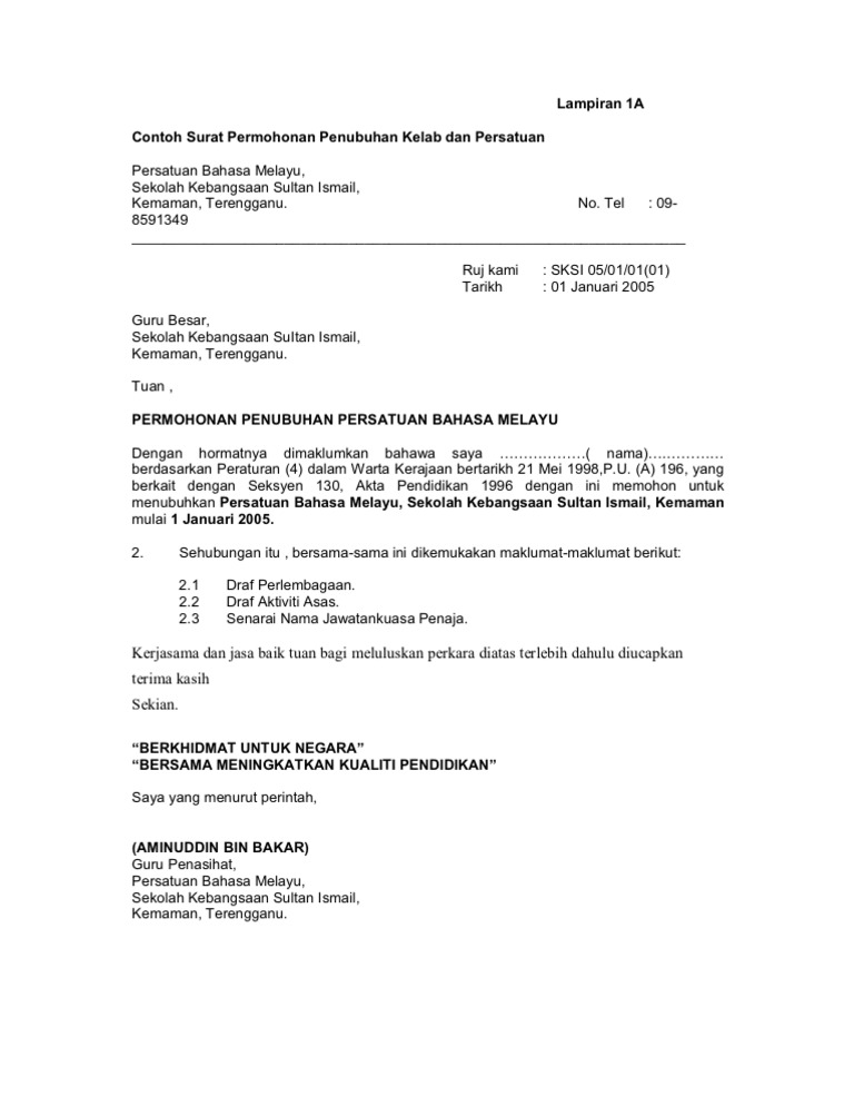 Contoh Surat Epenubuhan Persatuan Terbaru Englshsabih